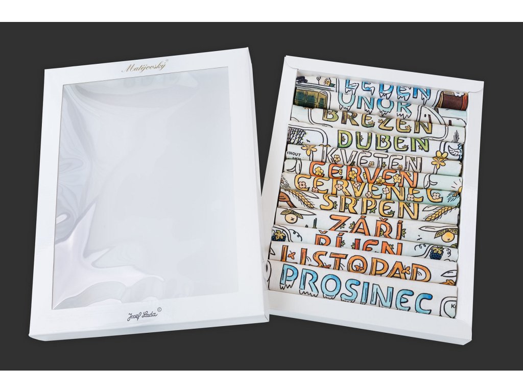 - Darčekové balenie obsahuje 12 ks utierok ako na fotografii s motívmi všetkých mesiacov v roku v luxusnej darčekovej krabici