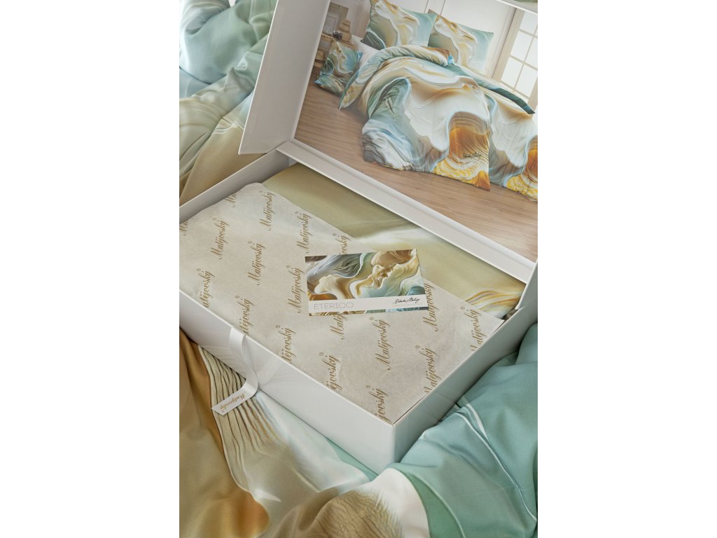 Obliečky sú dodávané v luxusnej darčekovej krabici (v prípade dvoch rovnakých setov balené v jednej krabici ako súprava obliečok na manželské lôžko).