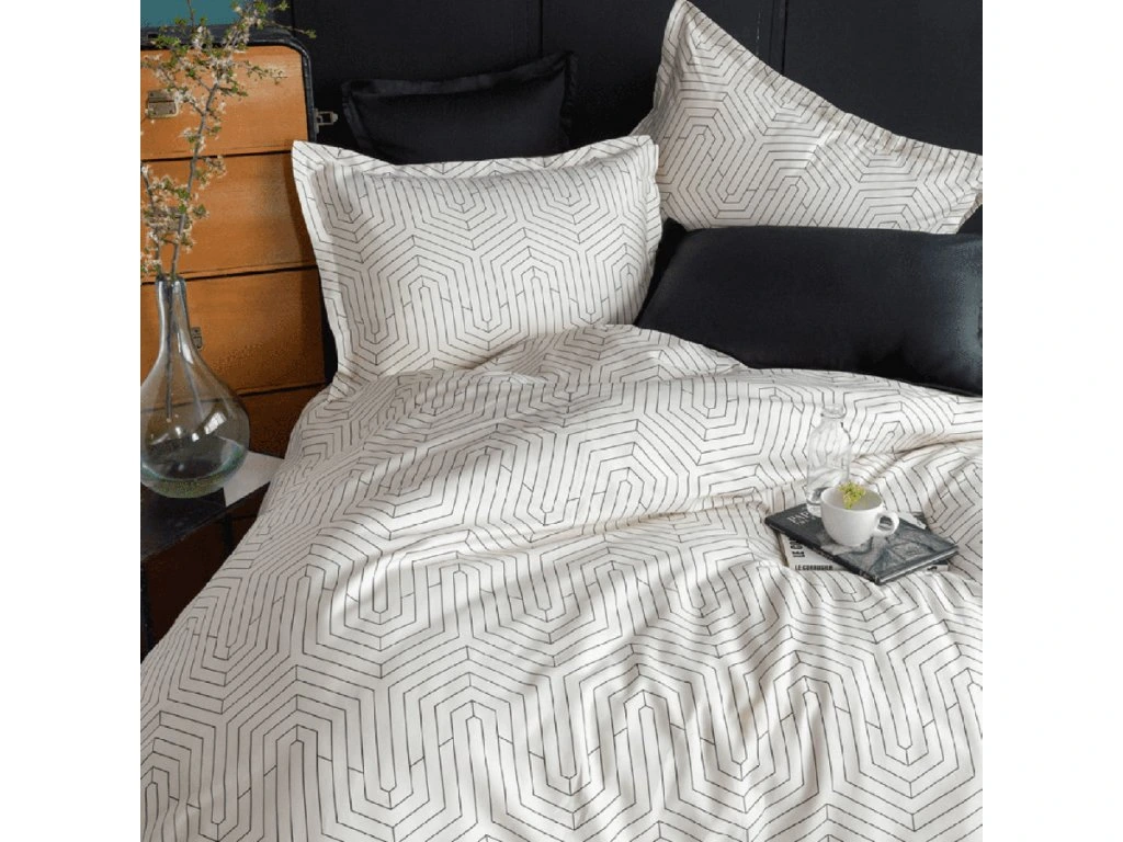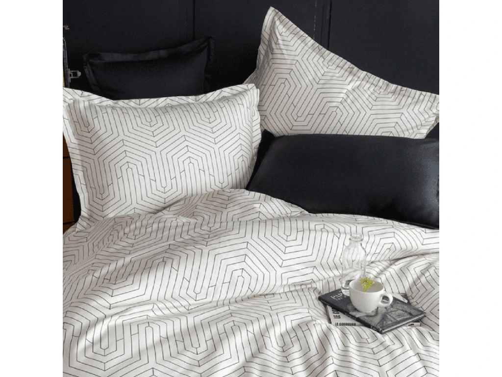 Saténové obliečky Strada white vyrobené z kvalitného bavlneného saténu jemného na pohladenie, v zime zahreje, v lete chladí. Prikrývka 140x200cm je z jednej strany vzor ako na fotografii a z opačnej strany bez vzoru v jednofarebnej čiernej farbe. Návlek na vankúš 70x90cm je z každej strany vzor ako na fotografii.